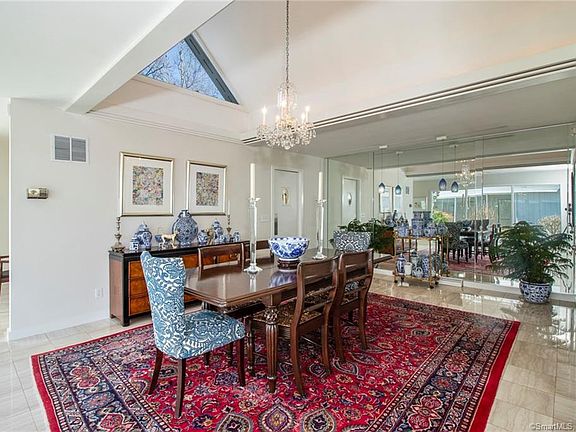 Country Club living at its finest! Expansive, architecturally unique, one of a kind, contemporary ranch, nestled among private lightly wooded manicured grounds and stone walls. This property with substantial renovations, features interior walls of glass many rooms as well as vaulted ceilings to bring nature into the living area. Recently painted inside and out. Marble foyer, with custom-built ins. Living room features marbled, gas fpl. Huge formal dining room for entertaining. Skylighted granite kitchen has all new high-end appliances. Family room has custom built entertainment center and dry bar. MBR Suite boasts sky-lighted cathedral ceilings and wall of sliders.. Many custom built ins w/ large walk in closet. Bdrm leads out to its own solarium to meditate, exercise, read or listen to jazz. Stunning marble master bath. The entire house surrounds a Zen-like courtyard filled with ornamental trees and perennials visible from all areas of house. Newly installed, blue-stone patio for summer soirees in the midst of landscaped plantings. Outdoor lightning showcases the house as your guests arrive for an evening get together. Steps away from Oak Lane Country Club to play golf and tennis year-round. Just five minutes away from the Woodbridge Club to enjoy the same. Easy access to highways, shopping and dining. Excellent rated school system. A peaceful home retreat. Must See! This house wont last. Showing By Appointment Only!