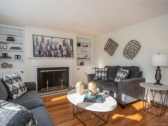 You will be impressed by the stunning, newly refinished hardwood floors when you walk in the front door! This three bedroom ranch offers a newer roof, one car attached garage, and a low voltage electrical system that offers high efficiency. The living room is large and cozy with a wood fireplace that is surrounded by built ins. The dining room is the center of the home and offers convenience to the large eat in kitchen. You can walk from the kitchen to a great deck, brick patio and private fenced in backyard. All three bedrooms offer ample closet space and the full bathroom has been fully updated! The finished lower level offers so much added square footage with a laundry room, another room with a large workbench and cedar closet for added storage, and a great family room with a wet bar all with newly installed carpeting! This home is just a short walk to the Wethersfield Country Club! Don't wait.