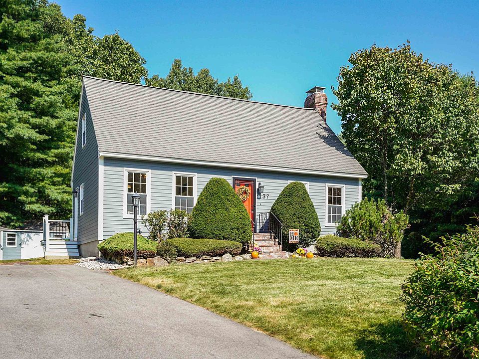 A Serene Lifestyle, A Prime Location. Welcome to this 2 Bedroom, 1.5 Bath Cape-style home situated on an Acre+ lot. Enjoy the private backyard, in this quiet neighborhood, that's so close to all that Merrimack and Nashua has to offer. Once inside, the front to back living room is perfect for entertaining, as you cozy up to the wood-burning fireplace. Off the living room, the slider opens to a newer trex deck, overlooking the flat yard. The kitchen has granite and stainless steel appliances, and is adjacent to the dining room with built-in shelving. The first floor rounds out with a 1/2 bath and laundry area. Upstairs you'll find two bedrooms, one with cathedral ceilings and beams, and a brand new skylight. The full bathroom is updated with granite, adding luxury and style. The lower level has a finished space, as well as additional room for storage. This home is tastefully decorated and meticulously maintained. C/A, Generator Hookup, Public Water with Full House Water System, Irrigation. Showings begin Friday Sept 20. Open House Sat, 9/21 Noon to 2pm & Sun Noon to 2pm. Offers due Monday at 4pm.
