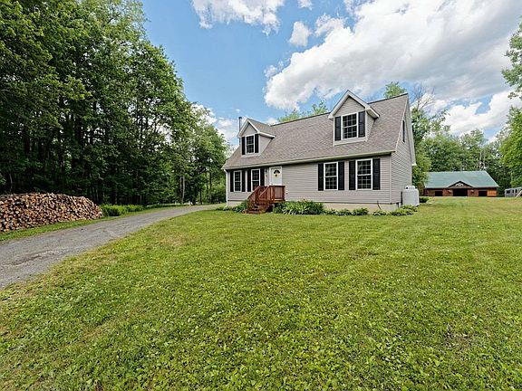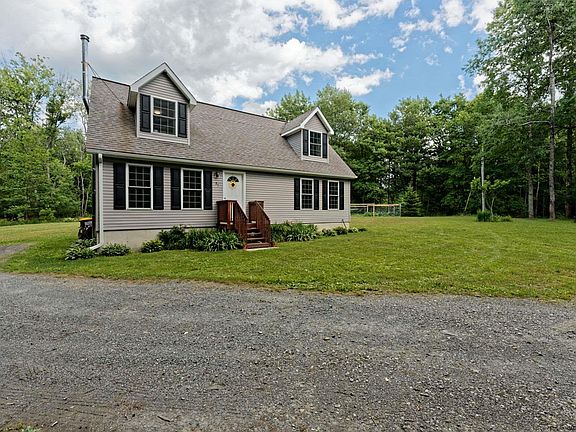 This quaint and very private gentleman's equine property was built with love and care for their equine friends. -70 x 200' Outdoor arena with lights and outlet, constructed with sub-base, road fabric, stone dust, and then sand footing. 4 stall barn (walls are easily removable for foaling stalls) with diagonal pine paneling and custom built arch top wood doors. -Windows and/or Dutch doors off every stall -Hay loft fits 700+ bales of hay! Potential to add off the home for more space and garage. 3 BR 2 Bath Cape sits on a private lot on almost 14 acres. This is the perfect spot for privacy, paddocks, riding trails and home for your equine family. The possibilities are endless!