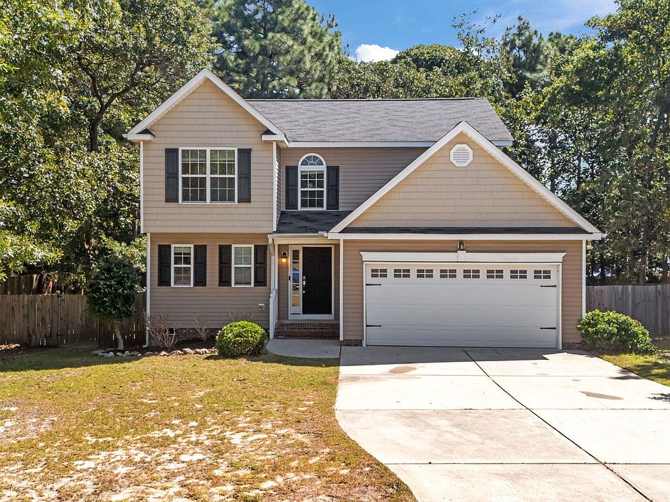 Tucked away on a quiet cul-de-sac in the charming community of Tingen Place, this home offers the perfect blend of comfort, space, and convenience—just minutes from Ft. Bragg and with an easy commute to both Raleigh and Fayetteville. Step inside to an inviting open-concept floor plan featuring wood flooring in the entry and kitchen, and new flooring in the living room—complete with a fireplace, ideal for relaxing evenings. The open kitchen is fully equipped with a smooth-top range, built-in microwave, dishwasher, and refrigerator, making it ready for home-cooked meals and family gatherings. Laundry Room includes the washer and dryer as well. Upstairs, you'll find the spacious master suite with a walk-in closet, double vanity, and luxurious garden tub—your own private retreat. Two additional bedrooms, a full bath, and a versatile loft space round out the second floor, perfect for a home office, playroom, or media area. Enjoy fall evenings outdoors on the elevated deck, with stairs leading down to a concrete patio—ideal for entertaining, grilling, or making s'mores under the stars. The backyard backs up to beautiful, mature trees, offering privacy and that peaceful, getaway feel. Don't miss your chance to get nestled into your new home this fall—schedule your tour today!