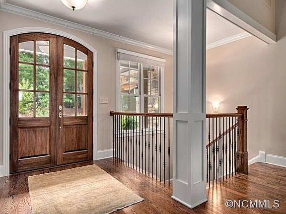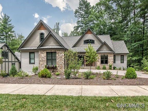Light and bright with two bedrooms and 2 baths on the main floor, hardwoods, quartzite and tons of storage, this 2014 stone and stucco home feels brand new. The floorplan takes great advantage of the wooded views. 5th bedroom currently used as workout. Enjoy 24 hr guarded/gated security, saline pool, miles of trails, Longmeadow Park. Conveniently located only minutes from South Asheville amenities, the airport and vibrant Downtown Asheville.