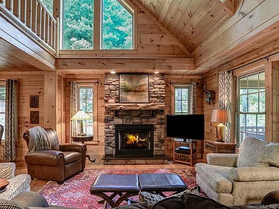 Located in Reem's Creek valley off Parker Cove Road, this charming log cabin is close to both Weaverville and Asheville, while private and secluded. Two separate master suites- one up and one main. Full unfinished basement plumbed for further use with exterior access(Perfect for storage or additional living area) Wood floors and tons of natural light make this a special and spacious cabin. Custom built by owners with a long history as a vacation rental with natural wood cabinets granite counter tops and stainless appliances. Immaculately maintained and furnished tastefully. Furnishings are available with full price offer. The lovely home features a stone patio with stone wall- perfect for a cook out and a fully covered rocking chair front porch, perfect for relaxing in the Blue Ridge Mountains. See Video and photos. This home stays booked so showings much be planned with that in mind. VRBO listing as 312234