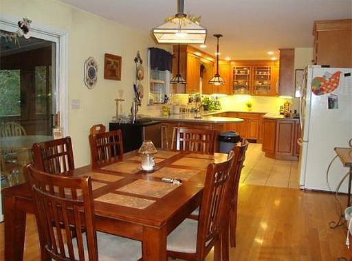 Priced to sell - 4 Bedroom 2.5 bath colonial in beautiful private setting. Updated eat-in kitchen with solid surface counters and breakfast bar open to F/P'd dining room/family room with sliders leading to beautiful 3 season sunroom. Large LR with built-ins, formal dining room or den with wainscoting , 1/2 bath, laundry room completes the first floor. The 2nd floor boasts 3 good sized bedrooms sharing a full bath. Then add the large M. Bedroom with M. Bath. The basement has an expansive family room with walkout to back private yard adding considerable living space to the already disclosed LA. A large 2 car attached garage, private setting/yard and close proximity to town makes this the perfect home.