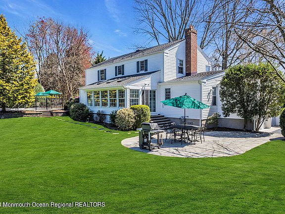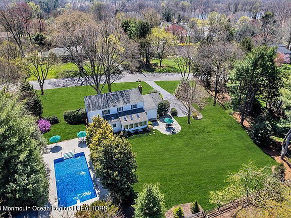 Home offers bright foyer, eat-in kitchen with crisp white cabinetry, elegant dining room with decorative chair rail, sunroom featuring a wall of windows, spacious family room with wood-burning fireplace, large primary bedroom with walk-in closet, fabulous full finished basement with full bath, wood floors & updated baths. All bedrooms are spacious with generous closets. You will love entertaining family & friends pool side in the resort-like backyard featuring bluestone patio, mature landscaping surrounded by nature's peace & tranquility. Living in Colts Neck offers a great sense of community pride & is close to beautiful beaches , parks & NYC transportation.