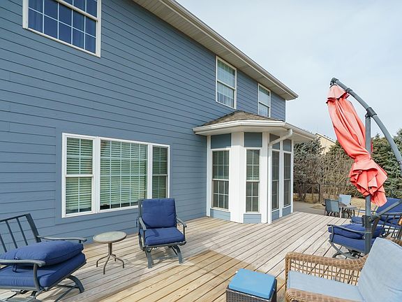 Welcome to 37 Deer Run Circle, a beautifully updated home in a charming neighborhood just west of McCook Lake. Nestled near Adams Nature Preserve, this home offers easy access to scenic trails and outdoor adventures. With minimal light pollution, it's also a perfect spot for breathtaking night sky views. The well-maintained yard is lined with evergreens and also has several apple, pear, and cherry trees, creating a private and peaceful retreat. The exterior was professionally repainted and caulked in 2024, ensuring long-lasting curb appeal. A newly added 6” reinforced concrete pad provides extra parking and can accommodate a heavy RV or camper. The backyard is mostly fenced with black chain-link fencing, featuring a beautiful deck, a detached single-stall garage (currently used as a shed), and a poured concrete pad ready for a basketball hoop. The heated garage adds year-round functionality. Inside, modern updates shine. The kitchen and half bath were remodeled in 2024, featuring elegant quartz countertops, a classic subway tile backsplash, stylish LVT flooring and new dishwasher and stove (2024 ) and fridge (2022). The main floor also includes a dining room with backyard access (brand new entry door), a cozy office with French doors, and a spacious living room with a gas fireplace and built-in overhead speakers. Upstairs, the large master suite includes an ensuite bath, while two additional bedrooms offer great natural light. Fresh paint and brand-new carpet extend throughout the stairs, hallway, and bedrooms. The basement provides a generous family room, a ¾ bath, and a fourth bedroom with an egress window. With a new furnace and AC installed in 2019 (maintained annually) added concrete curb landscape edging for a polished look, this home is move-in ready. Don't miss out on this perfect blend of comfort, nature, and modern updates!