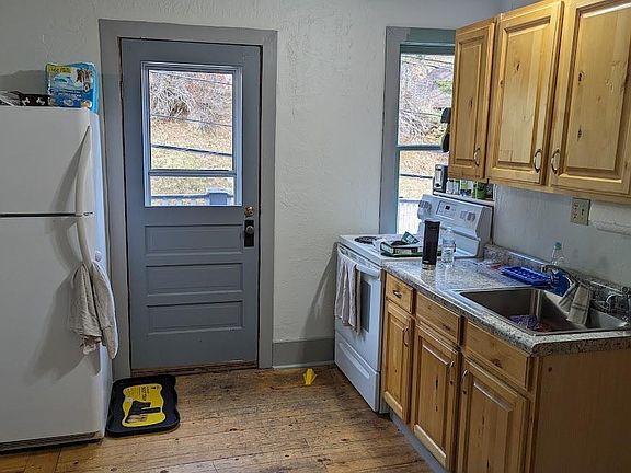 Never worry about parking in order to work in Deadwood ! Over-Under Tri-plex with Seperate Entrances. Located 2 Blocks from Main Street Deadwood, on Denver Ave. 1 Block to Grade School and Library ( free wifi and computer/printer access)! Off-street parking or street parking out front. Offering it as Unfurnished or a Completely Furnished rate ! Great Newer remodel. 10x22 Garage unit available for rent for small vehicle or personal storage for additonal fee In-house, newer washer/dryer set up Natural Wood Floor, Cozy set up. Has walk out Porch Completely furnished down to bedding/kitchen utensils = Rent $1350 If furnished King Bed Master Bedroom w/ bedding Queen Bed 2nd BR w/bedding Futon Couch in Living Room TV, countertop appliances, rugs, coffee nook, sofa table, etc. All kitchen pots/pans, utensils, etc. One month Rent for Deposit and first Month Rent required, after approval. All utilities will be split by 1/3 of a normal house utilities. Pets allowed, with approval by the landlord. This is the 2nd floor unit that can be fully or partially furnished for a small fee. Common laundry area with newer machines There is plenty of offstreet parking and nice longer term neighbors in the tri-plex Garage available for rent as well on property.