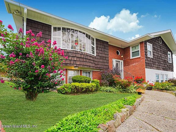 Oh WHAT A VIEW! This beautifully renovated Broadside home is located on the exclusive, Emerson Hill. This single family, fully detached, home sits on an oversized lot with breathtaking & unobstructed views for miles, 4 bedrooms with plenty of closet storage, 4 new and beautifully appointed full baths, a full and finished basement with 4 additional rooms, (2 are set up as bedrooms), sitting room with electric fireplace, and custom cabinetry with a wet bar and wine refrigerator. First Floor-formal sunken living room with wood burning fireplace and huge picture windows that allow the light to flood through each room. An eat in kitchen, dining room, enclosed porch that leads to a wrap around patio with slate tiles, sun setter awning with led lighting, outdoor TV which makes it a perfect space for entertaining or just relaxing in this serene space, while enjoying the amazing views and city skyline! Baseboard heat and hot water, separate energy efficient AC's in basement and central AC on first floor, attic for even more storage, built in garage, driveway parking for 4 cars. It offers over 2,000 square feet of living space as most of the basement is above grade. The lot size is over 20,000 square feet. One look at all this wonderful home has to offer and you will feel compelled to make this beauty your own! Convenient commute close to Verrazano Bridge, express bus, and shopping centers.