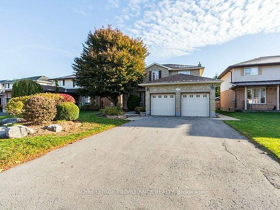 This beautifully updated all-brick, 4 bedroom home is tucked away on a quiet cul-de-sac in a highly sought-after neighbourhood. Step inside to a spacious foyer leading to a large living room, formal dining room, and a sunny eat-in kitchen (2010) featuring tile flooring, quartz countertops, and Thomasville cabinets. The family room offers a cozy wood burning fireplace, while hardwood floors flow through the living room, dining room, upper hall, and bedrooms. A winding oak staircase leads to the upper level with a 4-piece main bath and a primary bedroom complete with a 4-piece ensuite and walk-in closet. The finished recreation room includes a freestanding gas fireplace for added warmth and charm. Recent updates include main and upper floor bathroom renovations, window and patio door replacements with new window coverings (2019), roof shingles (2017), eavestroughs and downspouts with leaf guards (2018), and a high-efficiency forced-air gas furnace with humidifier and central air (2014). Additional features include a natural gas BBQ hookup, new sump pump (2024), and a partially fenced yard. Conveniently located minutes from schools, Quinte Mall, and Highway 401 - this is the perfect place to raise your family!