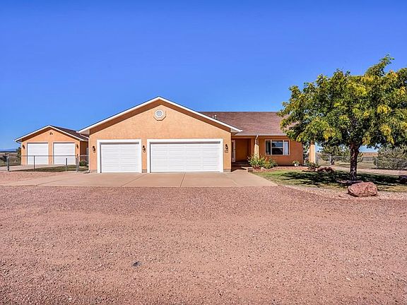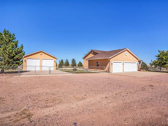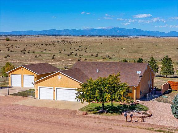 WOW! One Owner! Meticulouslymaintained! Unobstructed Mountain Views of Pikes Peak/Greenhorn Mtns & backs up to Walker Ranch! 2x6 Construction on this 4/3/3 + 4 car stucco 36'x24' shop w/9 ft automatic doors. Great curb appeal with wonderful covered porch and nice landscaping! You will enjoy the outdoor space & great views from your large coveredpatio with attractive privacy walls. This custom home features a spacious kitchen and dining room area with a breakfast bar island (w/electricityoutlets), walk-in pantry & beautiful hardwood looking tile floors that flow into living room. The kitchen features lots of cabinet & counterspace along with all appliances! The main level laundry has cabinets, utility sink & tile backsplash. The convenient 1/2 bath is just off the oversized 3 car garage complete w/shelving & a workbench. The large primary suite has dual walk-in closets & a 5 pc bath. The fully finished basement has a wood burning stove in the big family room with luxuryvinyl plank flooring that flows into the office and finished out storeroom/craft room. The basement bedrooms are a nice size and all of the basement windows have security egress window wellcovers. This well maintained home has so much to offer including new certified septic tank, newer HVAC system, Radon System, Pet free home, and RV Parking with 30 AMP RV hookup. Camera securityvideo monitoring and monitor will stay. Roof has been inspected and has Class 4 high impact shingles. Hurry! Won't last long!