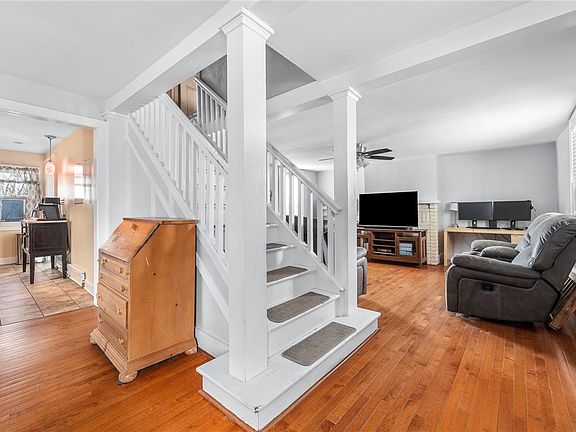 WELCOME to your HOME in CANON McMILLAN SCHOOL DISTRICT. Your SPACIOUS 3 bedroom and 2 FULL bath home is lovingly taken care of and within walking distance of downtown Canonsburg. Each BEDROOM is a generous size for your furniture, sleeping, playing, desk, etc ... Your KITCHEN is UPDATED with lots of cabinetry and counter space. The LAUNDRY room is on the 1st FLOOR and can double as a MUD ROOM. Your backyard is FENCED with access from a sliding glass door and a PORCH to watch nature. You have 4 OFF STREET PARKING spaces. YOUR living room and dining room have HARDWOOD FLOORS. There are HIGH EFFICIENCY RADIATORS in each of the rooms to offer steady heat. Home WARRANTY is included with the sale of your home. Your BASEMENT is DRY and offers lots of STORAGE. Previous owners used one of the rooms as a workshop.