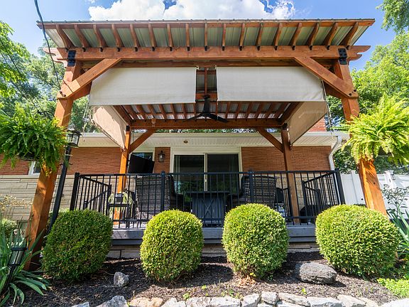 Constructed in 1962, this impeccably cared-for 3-bedroom residence is offered by just its second owner. Encased in Indiana limestone and classic red brick, with towering mature oaks, this home boasts striking curb appeal with a new concrete driveway (2024) with numerous highlights, including an oversized 2-car garage with an epoxy floor, a spacious basement, a roomy kitchen, new windows (2023), and a charming garden shed just to name a few. The newly added fenced-in backyard (2021) enhances the residence for a private, serene retreat. A sturdy, 10-foot cedar pergola (2020) with a rich and natural finish, is equipped with a ceiling fan, tv mount, lighting and outdoor roller blinds. The yard offers both security and seclusion.