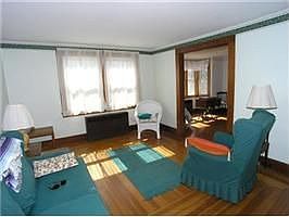 Year-round 4 bedroom 1.5 bath bungalow with lots of light and wonderful wood floors. Enormous front porch runs the whole width of the house. Deep 1/3 acre lot just down the street from the new Dennis Public Library, the Harwich Junior Theatre, and the Dennisport village green and playground. Light-filled dining room with built-in corner cabinet and lots of windows. Updated kitchen with new tile floor. Replacement windows. New Title V septic.