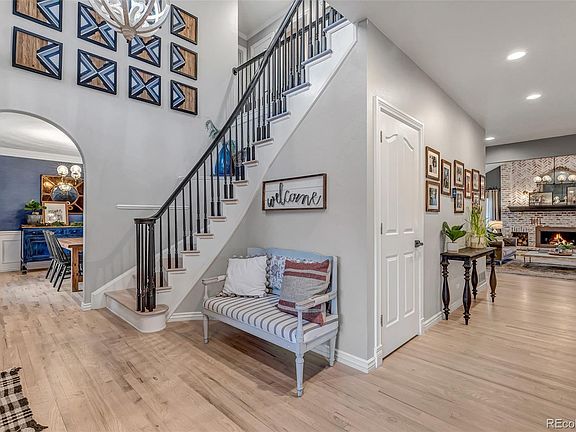 Beautiful Brick Tudor Style home in The North Ranch neighborhood of Ken Caryl Valley. This home offers 5400 square feet 5 bedrooms and 3.5 baths and a large corner lot with .41 acres. This home has been fully updated throughout with with new oak hardwood floors, new interior and exterior paint throughout, floor to ceiling brick fire place and a gourmet kitchen that includes Thermidor appliances, a Built in Miele Expresso machine and walk in pantry. In addition to the amazing fireplace room and gourmet kitchen the main floor has the most inviting office with 2 walls of built-in cabinets and huge wall of windows. Upstairs you will find 5 large bedrooms plus a bonus room with its own staircase entrance and separate full bath. This home’s exterior space offers a large flat oversized north facing driveway, backyard patio, covered front porch overlooking mature landscaping and Mountain Views. The North Ranch pool, tennis courts and play ground are walking distance from this house and is on quiet flat street is perfect.