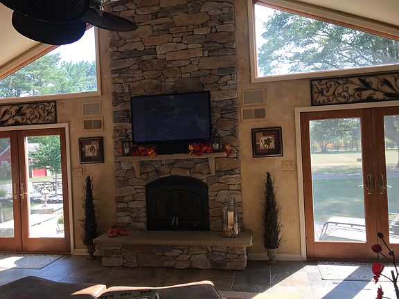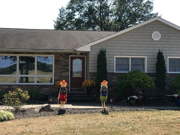 Home Sweet Home best describes this sprawling rancher sitting on almost 2.5 acres of perfection! Open floor plan consists of new gourmet kitchen and stunning great room boasting cathedral ceiling, gorgeous windows and floor-to-ceiling stone fireplace. Formal living room also has a fireplace and gorgeous bay window looking out at endless rolling hills. Three spacious bedrooms. 2.5 baths all updated, master bedrooms has full bath. All floors are tiled and hardwood. Two-zoned central air and multiple-zoned heat. Brand new septic. Horseshoe driveway makes gatherings easy. Full, finished basement and lots of storage. Approximately 2300 sq. ft. Oil, baseboard heat and central air. Solar panels are owned and seller receives residuals.