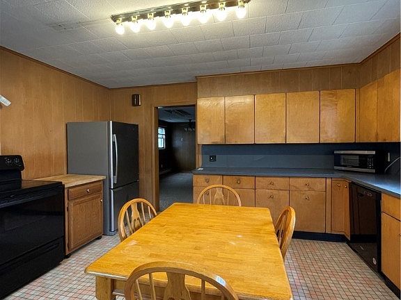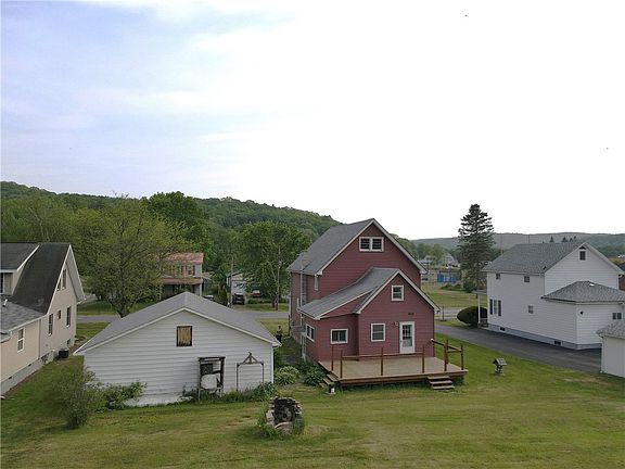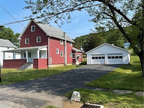 Two story home with a large lot and detached two car garage. Full wrap around covered porch. The first level has a large kitchen with appliances included in the sale. Exit the kitchen onto the rear open porch. Formal dining room and living room. The laundry/bathroom is set up for a shower/tub. The second level has four bedrooms. The master bedroom joins into the jack and jill full bathroom. One bedroom would be perfect for your office space. Partial basement. This is public water but there is a by pass value to the water well in the rear, perfect for gardening or washing the car. Blacktop driveway with two car garage. Park with pavilion, play area, ball field across the road. ONLY Cash or Conventional loans.