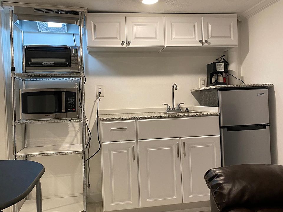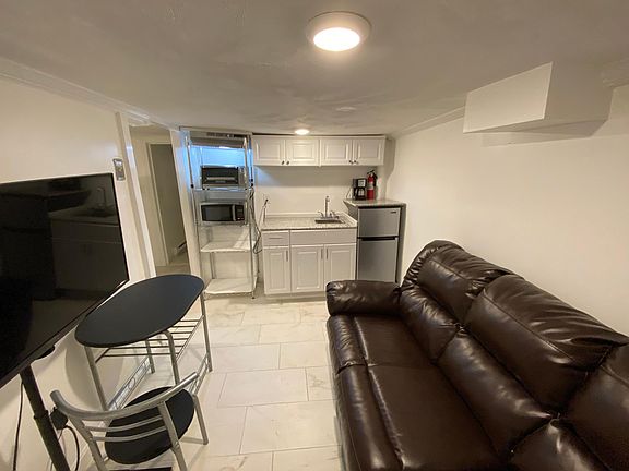 No Fees. Furnished, FREE WIFI, Utilities Cable TV. Bus Rail Shops Available August 1. PRIVACY! If you want privacy and have a budget, this is for you. Private entry. No sharing of bathroom and kitchenette. No Roommates. Includes FREE all utilities, electricity, heat, hot water, AC, WIFI, cable TV. Furnishings: Two TV's, leather couch with reclining seats, plus fridge, bed, bistro table and 2 chairs, toaster oven, microwave, coffee maker, utensils, etc. No Stove. Open concept Living Room and Kitchenette. Separate Bedroom. Kitchenette has Granite counter. Marble tiles in Bathroom and around windows. Porcelain Tile floors. Much Storage area in lobby. Free use of washer and dryer inside building. 2 minute walk to Bus to Forest Hills Station Orange Line, Green T CAFE, convenience stores, and Fast Food places. 10 minute walk to Purple Line - Commuter Rail, many Buses to Forest Hills Station and Orange Line, Fallon Field Park, Arnold Arboretum, new playground, Target, Super Market, and MANY restaurants, shops, etc. Must have very good credit and references. Co-signer with excellent credit and references is acceptable. Move in costs are first month, last month, and security deposit. No Finder Fees! 2nd Occupant is total $1575 / month. All Utilities are included. One Year LEase. Move in costs are First Last and Security.