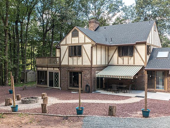 An English Tudor Style Home surprises you as you crest the tiered driveway to a clearing on the hill, Your Home Awaits! A gorgeous 2.73-acre wood lot offers mature landscapes around the home, nice front yard, newly cleared rear yard featuring a refreshing and expanded private patio area for hosting, and the serenity you have been looking for in a location within sought after Angelica Woods, Govern Mifflin Schools. This distinctive Tudor on the Hill offers over 3500Sq Ft of living space including the massive, finished basement quarters. The traditional layout provides cozy individualized spaces and unique nooks that are perfect for todays segmented family lifestyles. Enter a centralized foyer with a formal dining area looking upon the front yard to the left and a cozy living room with fireplace to the right both with original hardwood floors. Step into my favorite space the Florida room off the living area which features brick floors, dark stained beams/trims, and surrounding windows. Access the cozy den space on the rear of the home which boasts a stone fireplace with wood burning insert, direct access to the renovated/expanded patio amenity with firepit, and functional transition into the eat in kitchen. The eat in kitchen features granite counter tops upon classic cherry cabinetry, new cook top, built in oven, breakfast bar, table space, and tile floors. 1 of the 3 laundry areas is offset the kitchen in transition to the oversized garage. Upstairs a well situated 4-bedroom 2 Full bathroom second floor featuring a unique primary suite with balcony deck access overlooking the very private rear lot. All rooms are very sizable and host ample closet space in each. There is also direct access to the balcony via sliding doors from a second bedroom as well. The full hall bathroom offers a tub shower, upgraded vanity, and 2 of 3 laundry closets in adjacent full hall bath. An owner favorite is the massive 900 plus Sq Ft basement quarters which boasts full bathroom, 3 of 3 laundry room, wet bar with ample cabinetry, bilco egress, and cozy carpeting throughout. A brand-new roof has been installed as of July 2025, the rear property was cleared, graded, and seeded, the updated patio and outdoor living space is the ultimate opportunity to bring your vision too. This is a forever property, don't miss your opportunity at this Unique English Tudor in the Woods.