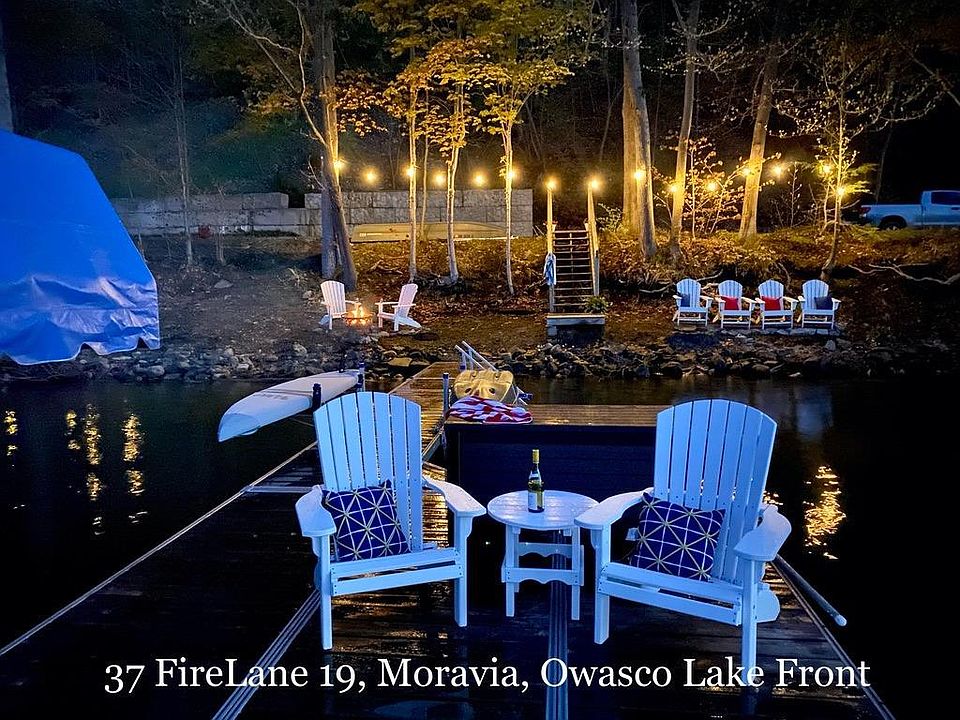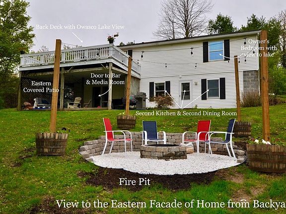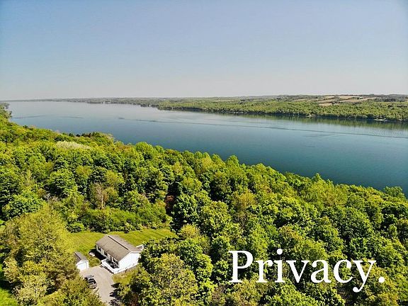 This Lake Property uniquely balances Privacy, Nature, Waterfront and a Smart Designed Two Level home. Located on 7+ acres on the Westside of Owasco Lake, this spectacularly and recently renovated home with 100 feet of prime lakefront and numerous outside spaces. Entertaining is fun and easy inside & outside! Upper Level features Open Floor Plan Kitchen/ Living Room / Dining Room with access to a Lakeview Back Deck and Owner's Bedroom, Walk-in Closet, 1.5 Bathrooms, Guest Bedroom with hand painted, detailed map of Owasco Lake and Laundry. Lower Level features Open Floor Plan Media Room/ Bar/ 2nd Dining Room / 2 Kitchen with access to Covered Patio, one bedroom, one full bathroom, storage closets, pantry and utilities. Backyard has built-in fire pit, hammock trees and fenced in garden area. Waterfront has plenty of parking, a platform dock, room for fire pit and sitting on the lake shore. And if you have to work while here, there's FIOS Internet at the house. Your new home awaits!