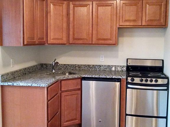 New 1 bedroom apt with Stone counter tops, hardwood floors, and laundry in unit Heat, electric and trash pick up included
