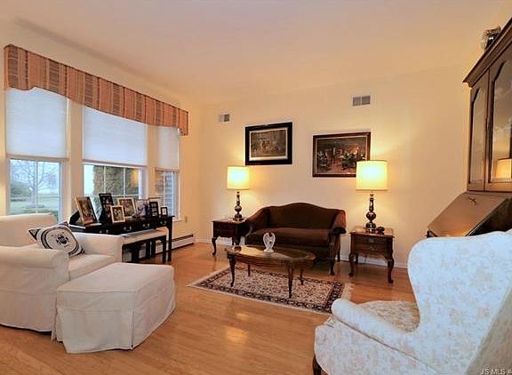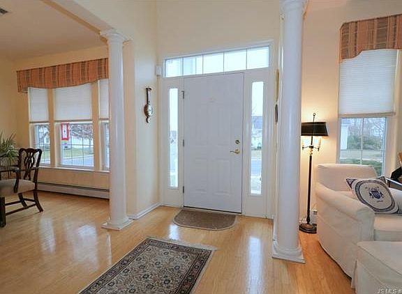 Looking for your dream retirement home? Your search will end as soon as you step into this impressive Mirage II model in Four Seasons at Mirage where Life is Good ! Many upgrades and features make this home stand out, from the stately two story foyer to the large beautiful deck to the loft up above, there is plenty of room for family, friends and grandchildren. Decorative columns & gleaming hardwood floors greet you at the entrance to the formal Living room and Dining room on either side of the light and airy foyer. The Gas fireplace with Oak mantle, Ceiling fans, vaulted ceilings, magnificent views of the Loft above and elegant staircase accent the Family room with transom windows. Any chef would feel creative in the spacious kitchen with 42" cabinetry, double sink with disposal, large island with breakfast bar, corner pantry, built-in desk and dining area with bay windows that overlook the deck. A wet bar and storage closet off the hall leads that leads to bedrooms on the