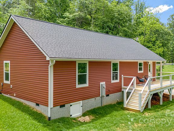 Newly built home on a nice private lot in the desirable Alexander area of Buncombe County. This home, built in 2025, is now complete and move-in ready. Single level living with an open concept floorplan, you'll appreciate the vaulted ceilings in the living area as well as the gas log fireplace to keep cozy on the cooler nights. The lot has a nice yard and the remainder of the lot is wooded with established trees. The Primary Bedroom has nice natural light, ceiling fan and an en-suite full bath with lots of cabinets and a tub/shower with tile surround. The additional two bedrooms are spacious as well. There is a laundry room off the hallway with shelving. The covered front porch is great for rocking chairs and wraps around to a side deck, with access off the kitchen/dining room and steps to the back yard. This is a nice home and ready for it's first owner! See the property video here: https://listings.wncrealestatephotography.com/videos/01970d4b-8cab-71aa-91a5-d342729513b1
