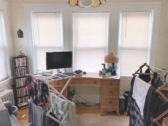 6 rooms of living space. The apartment has 2 large bedrooms, an open living room/dining room, and a study. Hardwood floors throughout. There are front and back porches. Laundry is free in the basement. On the second floor of a two family home. Walk to Davis Square in 10 minutes. (Reference #127772) No pets please.