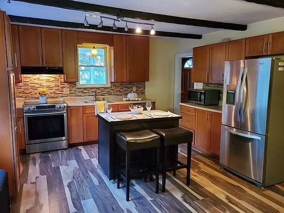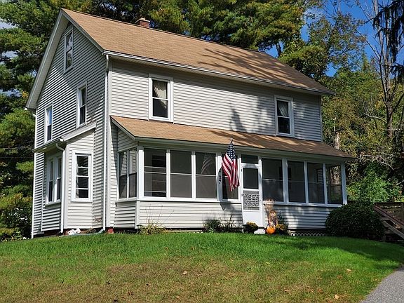 Move In Ready! Old Charm meets modern Flare makes this Colonial a BEAUTY. 1st floor offers - Large Eat-In Kitchen with center island, 1 full Bath, living room & dining room (other uses office or library/reading nook). 1st FL also offers beautiful beamed ceilings. Head on upstairs to 4 bedrooms (2 w/o closets) and a walk up attic (offers expansion options). Looking for some outdoor space - look no further - Great enclosed porch on front of house & large composite deck on side overlooking Fire Pit, yard & trees. Updates Include: 2015/2016 New Laminate Wood Flooring in Kitchen, Bathroom, Living Room, 2 Bedrooms, Stairway, Tan Shed & Fire Pit. 2014/2015 New Stove, Refrigerator, Dishwasher & Washing Machine. 2008/2009 Cabinets, Vanity, Kitchen & Bath Lighting, Carpeting. 2004/2005 Roofing, siding, windows, gutters (all APO). Wood stove in basement includes wood stove permit. Minutes to MA Pike, Hospital & Shopping. **Note Digital Stager Used for a couple photos**