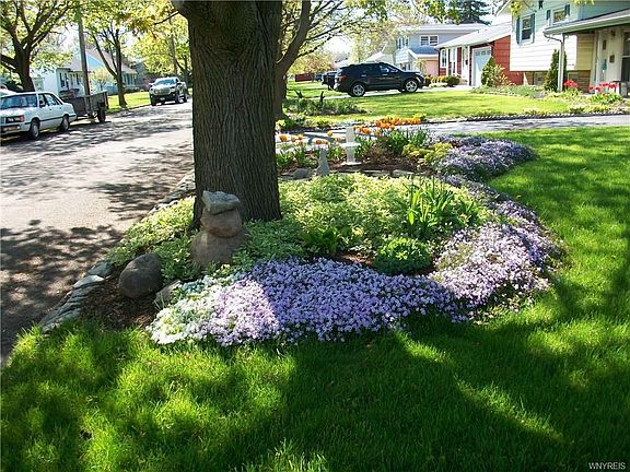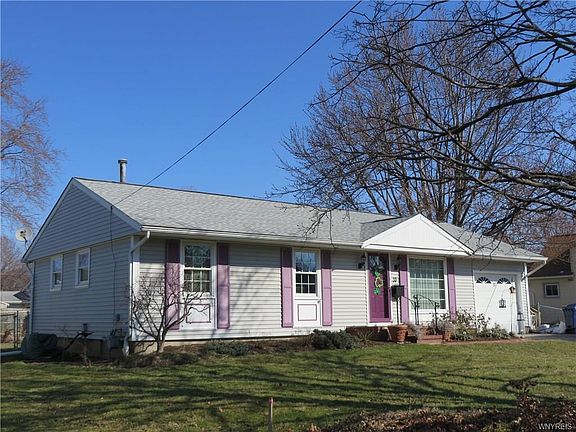 Stunningly decorated and beautifully maintained Ranch features hardwood floors in living room and bright eat-in kitchen. Recent updates include vinyl siding, gutters, exterior doors, garage door, tilt-in windows, tear off roof 2011, high eff. furnace 2015, more. Full and half bath on first floor, fantastic finished, carpeted family room and huge storage / laundry area with built in shelving in basement. Central air and recent additional aluminum attic insulation for extra energy efficiency. Large deck off kitchen overlooking fully fenced yard holding gorgeous perennial gardens with a small pond. Raised beds, dwarf fruit trees (apple, peach, cherry and pear), hazelnut,berry bushes, more. Double wide blacktop driveway, garage door opener. Part of our 100% money back guarantee program.