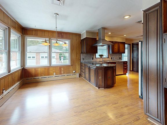 This is an incredible all-brick 4-bedroom, 2.5-bathroom ranch which is cozy, warm and absolutely inviting! Large living room with fireplace and bay window. Renovated kitchen with pantry, granite countertops, new appliances, and double stainless sink. Kitchen boasts a wall of windows allowing lots of light! Flooring is a rich color vinyl laminate. Master bedroom has attached full bath. Main hallway bath includes a jetted tub. Just off the kitchen is your sunroom with bay windows, tile floor, ceiling fan and sky lights. Full basement includes a second fireplace, storage areas, freezer, sinks and half bath! Bilco doors allow for back yard access. An extra-large detached garage includes two car space and additional storage space.