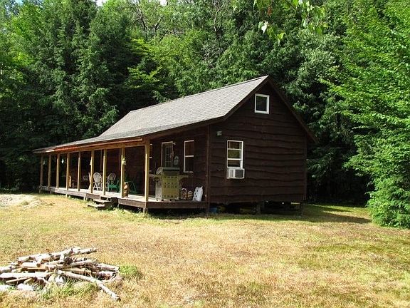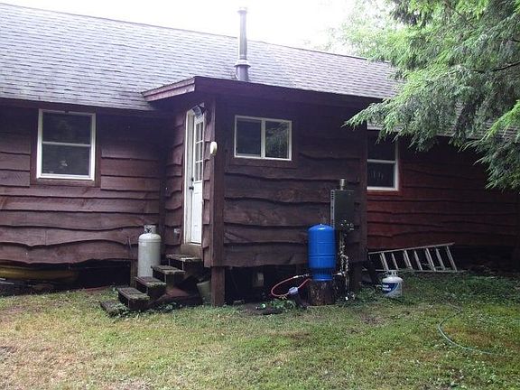 Nice 2 bedroom cabin with wrap-around porch.  Well, septic and generator.  Rustic wood siding outside.  Get away from it all and live with the amenities.  The inside is finished beautifully with a wood stove, kitchen and bathroom. This cabin is done well with a generator providing your electricity.  The inside is lovely with open lofts and wood finished walls.  Look at the finish around the wood stove.  Both bedrooms are also done well with the master having closets and a corner view with a sliding glass door onto the porch. Waterfront property on Little River but that is difficult to see or get near this time of year.  The land is excellent deer/turkey hunting or watching if you don't hunt.  Snowmobiles are handy to have and use here.  The salmon fishing is nearby too with Altmar, NY and Pulaski, NY a quick ride away.