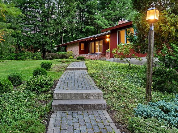 The list of amenities here is long with central air conditioning, updated heating and mechanicals, newer roof, sewer line and windows. Outside, professional landscaping with mature trees and many flowering garden beds accentuate the home's natural beauty. For the Mid-Century lovers, this house offers original Forbo flooring, natural linoleum, cathedral ceilings and complimentary light fixtures. This remarkable residence has been meticulously maintained over the years, ensuring that every detail is in pristine condition. The current owners have dedicated themselves to upholding the impeccable standards of this home while maintaining the spirit of the era in which it was built. From the carefully manicured landscaping to the spotless interior, no aspect has been overlooked. Rest assured, as the next steward of this property, you will inherit a home that has been nurtured with the utmost care and attention to detail, ready to provide you with a haven of beauty and tranquility.