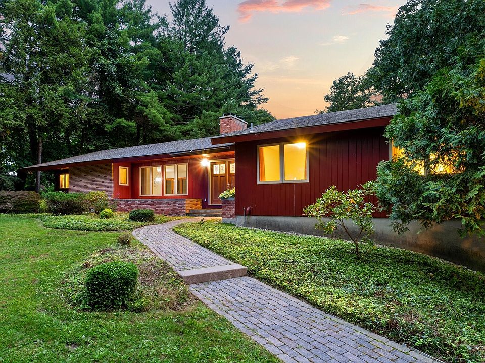 A refreshing departure from the ordinary! Welcome to Gorgeous Gravesleigh Terrace. Nestled among mature landscaping, in one of Southeast Pittsfield's most sought-after neighborhoods, this remarkable Mid-Century ranch eagerly awaits its next steward. Prepare to be charmed by the abundant features of this 4 bedroom, 3.5 bath home, offering a wealth of delightful spaces, most with rear facing views of farmlands and the protected lands of Canoe Meadows. The layout is an entertainer's dream, with expansive rooms and an open and elegant layout that effortlessly accommodates both large gatherings and smaller more intimate ones. The main living and dining rooms are both very spacious and offer glorious natural light, a wood burning fireplace, views to the rear and access to the rear porch The warm and inviting paneled den, adorned with a second wood burning fireplace, offers rear views, hardwood parquet floors, built-ins and beckons you to relax and unwind. Indulge your culinary desires in the large eat-in kitchen featuring solid wood cabinets, Cambia stone countertops, modern stainless appliances, ample counter space, and access to a large covered rear porch and the beautiful backyard beyond. The spacious primary bedroom features wood floors, walk-in closet , views out the back and a beautiful updated en-suite bath with custom cabinetry, double vanity, tile shower (with bench) and radiant heat. Completing the first floor are two additional bedrooms with wood floors, tiled entry, a fantastic laundry room with cabinetry, a convenient powder room and a wonderful full bath with Caspian Sea tile. This house is the one you have been waiting for!
