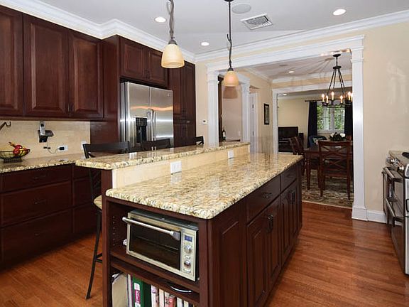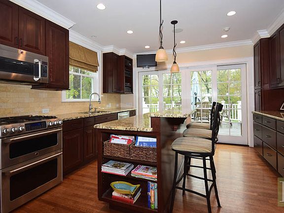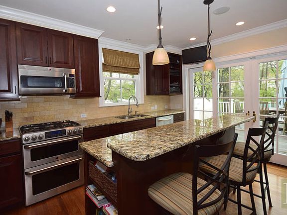 Cathedral entry welcomes you into this spacious, updated Dutch Colonial. Recent addition includes custom kitchen with granite countertops, SS appliances and island with French sliders leading to a composite deck, as well as an upstairs laundry room and master ensuite with walk-in closet. Open dining/living room ideal for entertaining boasts a gas fireplace, dry-bar and inside/outside surround sound. Lower level includes a playroom, office, half bath, ample storage and walk out to new slate patio with built-in fire pit. Backyard oasis with a view of the Noroton River on almost 1/2 acre of level, manicured land. This home has it all including exceptional built-ins, crown moldings, 9+ ft ceilings, generator hook up and security system.