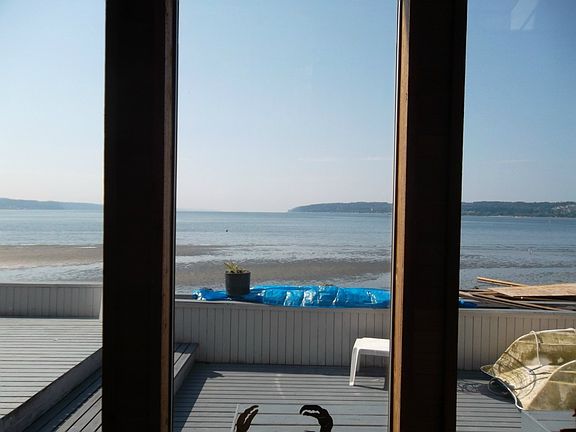 Unique waterfront home on private island. 62 feet of waterfront on sandy beach includes tideland rights. Many custom features--hand built rock fireplace, decks on three sides, nautical touches, upper level spa loft, Kitchen island with prep sink, phone booth. Sound and mountain views from most rooms. Cast for salmon from the deck & enjoy the sunsets.