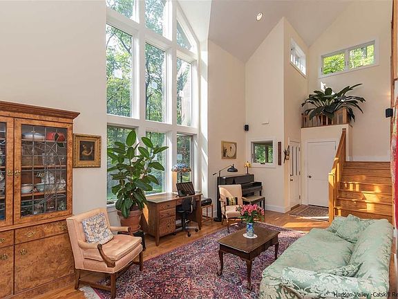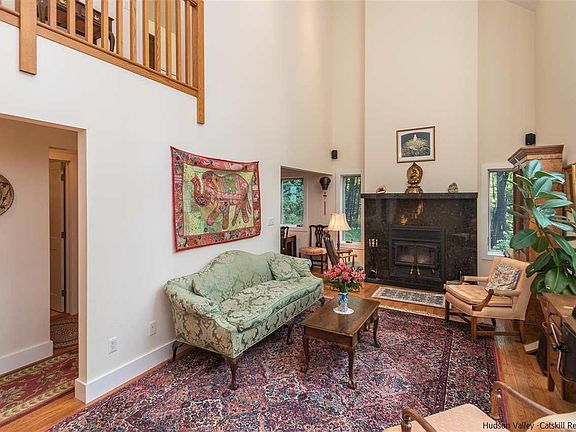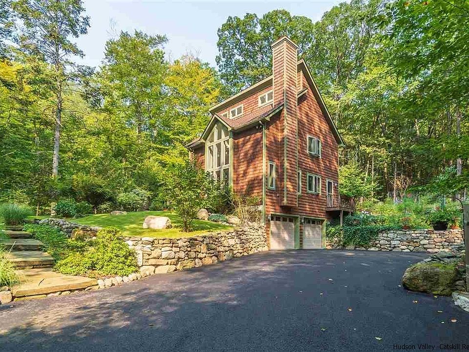 Just call it Paradise here! Set on just under 5 acres this custom contemporary offers total privacy & the wonderful sounds of a mountain stream- a tributary of the Shawangunk Kill. This dramatic and secluded spot is truly beautiful and peaceful. As you drive into the property you will see pristine woods, beautiful white oak trees & stone walls. This special home offers many features including Australian mahogany decks, vaulted ceiling with dramatic windows in living room, light filled rooms & clerestory windows. Extras also include Enerzone fireplace insert for extra energy savings & cozy warmth, oak hardwood floors & a chef's kitchen with custom cabinets, granite counters & stainless appliances. The home also features tiled baths, sauna & second floor balcony. A home office on second level provides potential third bedroom & opens to side balcony. High efficiency heating system and radiant heat on main level provide cozy warmth & a heat recovery ventilation system creates continuous air flow and circulation for healthy living. The side porches and balcony are perfect for quiet relaxation and listening to the sounds of nature. Vegetable and flower gardens, berry bushes and fruit trees complete the picture! Bluestone steps, stone walls , meandering stream and rear patio are added bonuses . Custom crafted this home offers quality construction & attention to detail! This wonderful setting is sure to please and offers an ideal weekend retreat with low maintenance living surrounded by nature and easy access to Mohonk Preserve, Lake Minnewaska State Park & miles of hiking and biking trails. Located just minutes to Hamlet of Gardiner & Village of New Paltz--this is one to see!
