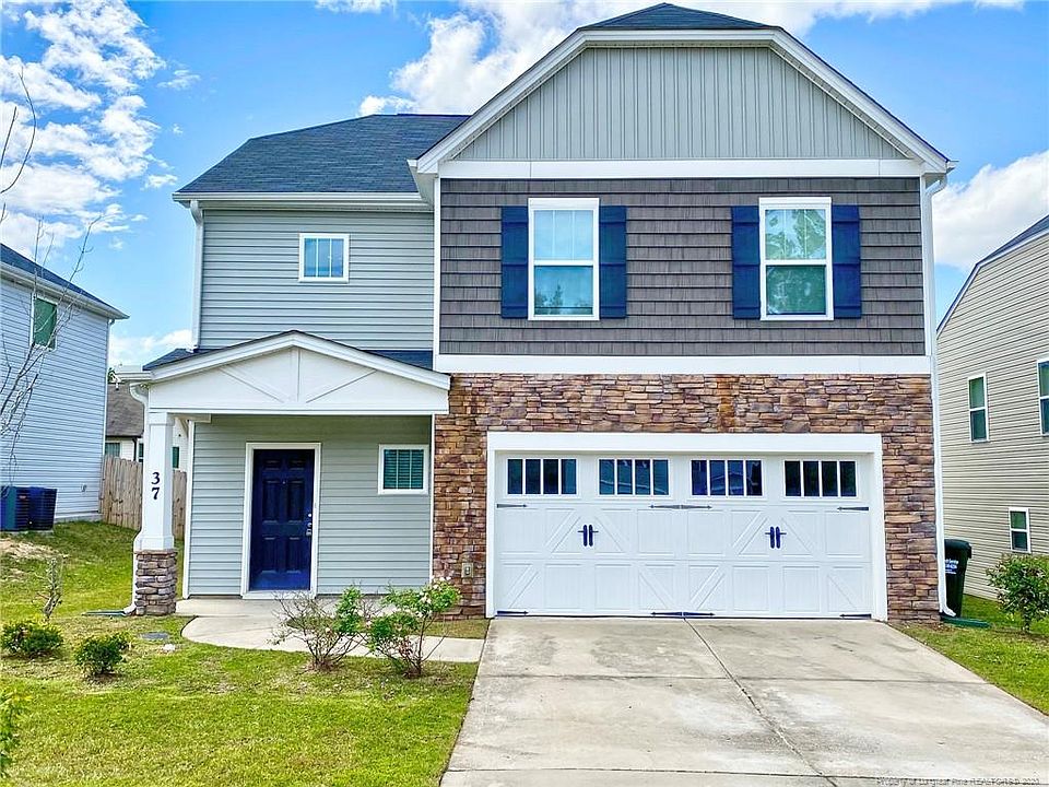 Welcome home to Olde Farm and small development in Harnett County. Wonderful home minutes from the Overhills Schools. High School and Middle School can walk to school on the sidewalks. Enjoy the county taxes and short drive to Fort Bragg. Home is located in Cul-de-sac, great place for kids to play. As you enter the home, hang your bag and leave your shoes at the custom entry bench. Follow the hardwood hallway to the large family room. Family room and Kitchen are open concept. Fall in love with the Kitchen, spacious granite counter-tops and so many cabinets. Stainless Steel appliances. Kitchen includes nice size pantry. Upstairs enjoy 4 bedrooms. Master has huge walk in closet. Lovely master bath with separate shower and garden tub. 2 more bedrooms upstairs have large walk in closets. Carpets just freshly cleaned. Interior walls recently painted. This home is all about Location!!! Bring yourself to Olde Farm and take a look at this wonderful 4 bedroom home.