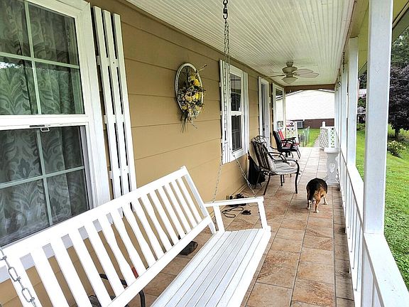 This home is so spacious that you would never believe it's only 1,000 square feet. It has a master bedroom with its own bathroom and a second bedroom with a walk-in closet and the spare bathroom next to it for the perfect design. At the end of the hall you will find an extra closet and the laundry room (the washer and dryer convey). Next to the rooms you will find the large living room and next to it the dining room right by the fully equipped kitchen. Walk out to the 38 foot long covered porch where you will enjoy the most beautiful views and don't forget to go around the back of the house where you will find not one but two storage buildings for all your gardening tools.