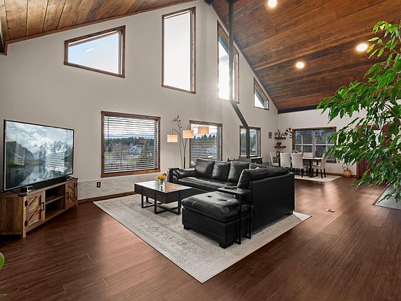 Charming Custom Craftsman on Over an Acre – Just Minutes from Town! Welcome to your dream home! This beautifully crafted custom craftsman sits on over an acre of land and offers the perfect blend of privacy, comfort, and convenience—all just minutes from town. Step inside and be greeted by a bright, open layout with vaulted ceilings in the great room and expansive windows that flood the space with natural light while showcasing breathtaking views of the Selkirk Mountains. A cozy wood-burning fireplace adds warmth and charm to the living area, making it the perfect spot to unwind. The well-designed kitchen features high-end appliances, a large island with bar seating, and seamless flow into the dining and living areas—ideal for entertaining. The primary suite occupies its own private level and boasts double closets and a stunning tiled walk-in shower. Two additional bedrooms are located on the main floor, one with an en-suite bath, offering flexibility for guests or family. Downstairs, the daylight basement offers a spacious fourth bedroom with its own full bath, kitchenette, and separate walk-out entrance—perfect for use as a mother-in-law suite or potential rental for extra income. A large built-in two-car garage with double doors provides ample storage and easy access. Outside, enjoy morning coffee on the fully covered front porch, or soak in the mountain views from the large open back deck. The fenced yard includes a productive garden with berry patches, fruit trees, a chicken coop, greenhouse, rabbit hutch, and more—an ideal setup for those who love homesteading or simply want space to breathe. Additional features include a solar system with a newer battery bank for backup power, high-speed internet, gas-forced warm air heat, and an assumable VA loan at an incredible 2.37% interest rate. Priced below current assessed value, this property is a rare find for those seeking a peaceful country feel with all the amenities of town just around the corner. Don’t miss this unique opportunity—schedule your private showing today!