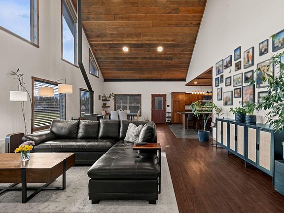 - Description: dining room is bright, vaulted 20 ft ceilings.