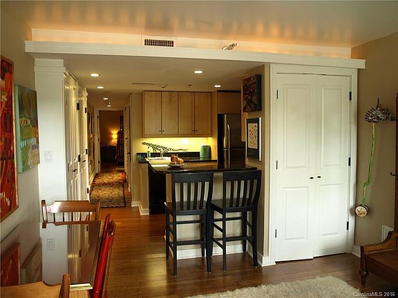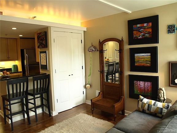 Well appointed, centrally located condo in the heart of central Asheville. Live right in the middle of the vibrant downtown scene. This is one of two units that are east facing & have 2 exterior doors & dedicated covered front porch. Possible handicapped accessible. On-site workout room, rooftop terrace w/ city views for entertaining, dedicated parking space (A24), tile bath w/ soaker tub, stackable W/D, excellent rental history, no rental cap. All for an affordable price per square foot.