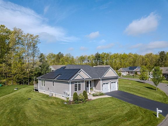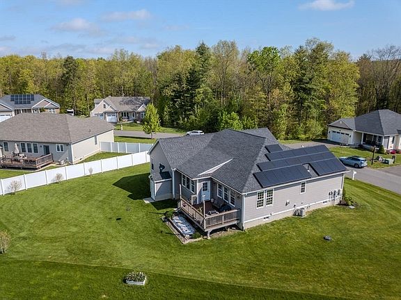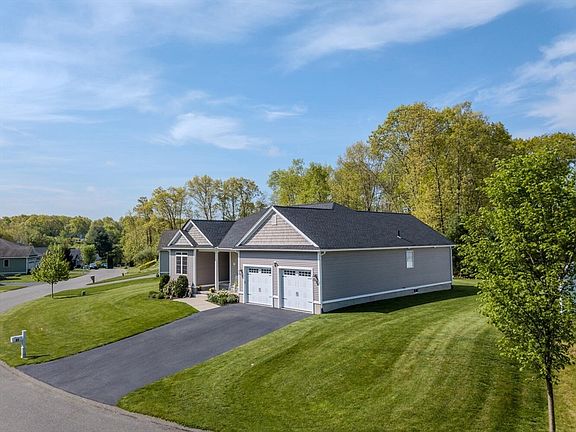 Enjoy one floor living in this meticulously maintained 3 bedroom, 2.5 bath ranch in Belchertown’s desirable Hickory Hill. Light and bright with a beautiful open floor plan, tray ceilings, gorgeous millwork and hardwood floors throughout, this is a most comfortable space for day to day living and entertaining. The kitchen features stainless appliances, and a convenient double height counter in the center island. The many upgrades include an owned Solar system which generates credits for electricity, sun-setter awning for the back deck, irrigation system, Nest doorbell and thermostat, motion lights for peace of mind, R-60 insulation in the attic for energy efficiency, pull-out shelves and soft close doors in the kitchen, and a blower fan for the fireplace. You'll also enjoy the convenience of a keypad garage door opener, the additional light allowed by an Anderson storm door, and the spacious basement is already studded and insulated. A pastoral setting convenient to all area amenities!