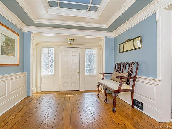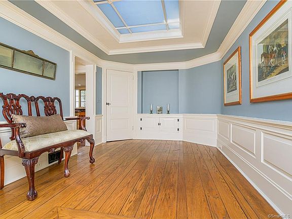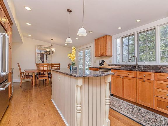 Charming 1876 Antique in Redding Center. Country charm throughout with wide plank hardwood floors, crown/dentil mouldings and wainscotting. Updated chef's kitchen. Main level master bedroom with recently updated en-suite bath. 2 bedrooms on second level, PLUS expansive attic with ample light and ventilation; ideal for storage or potential to finish. Set upon 1.36 acres of storybook property. Many updates include: Full kitchen remodel and expansion, heating system, central air, gas fireplace insert, recently painted exterior and some interior, water filter system, stone paths, auto garage doors, electric upgrade to 200 Amp service, exterior water feature.