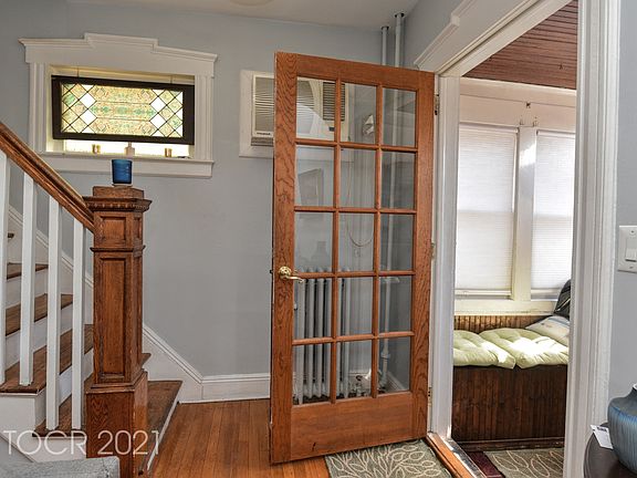 Loaded with charm and character, this lovely 3/4 bedrm, 1.5 bath home on level fenced in property w/ above ground pool has arrived! Amazing curb appeal w/ maintenance free vinyl siding, newer roof, attractive landscaping and long driveway. Enter into the vestibule w/storage and bench area w/ French door that leads you to sun-drenched spacious living rm w/ adjacent sunroom/home office and formal dining rm for entertaining. Enjoy the updated kitchen w/ corian counters, tile backsplash, ample cabinetry, pantry closet and breakfast nook. Convenient powder rm and rear door to backyard complete the first floor. Retire upstairs to master bedrm w/ bay window, additional two bedrms and full bath. Third floor offers a finished attic that can be used as an office/artist studio/4th bedrm. Unfinished basement w/high ceilings ready to be finished for additional space. Great outdoor space with quaint patio area, pool area and garage. Convenient location to shopping and major highways. - Basement: Full, unfinished