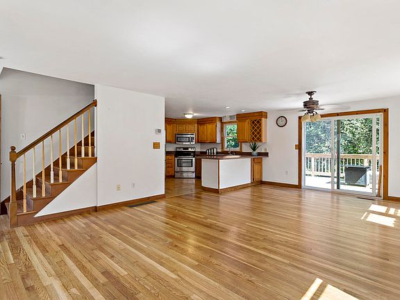 Situated 5 houses away from John's Pond this charming 4 bedroom, 2 bath home offers endless possibilities for relaxation & recreation. As you step inside, you'll be welcomed by stunning hardwood floors & an abundance of natural light streaming through the windows. The kitchen features SS appliances & opens seamlessly to the dining and living areas, w/ a slider leading to the spacious deck. A convenient 1st floor bedroom & bath w/ laundry provide easy 1 level living. Upstairs, you'll find 2 additional bedrooms w/ brand-new carpeting & a full bath.The deck is perfect for entertaining guests at a cookout or simply unwinding as you enjoy the privacy of your lot. The home has been freshly painted throughout. As part of the community, you'll have access to a private association beach, complete w/ swimming areas, a playground, & picnic tables. You can also enjoy a game of tennis/pickleball, or explore the waters of Johns Pond by boat, kayak, or canoe. Whether you're looking for a summer retreat or a year-round sanctuary, this home offers the perfect blend of comfort & convenience.