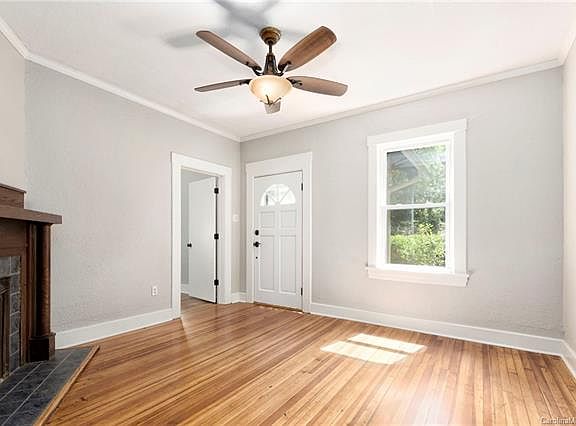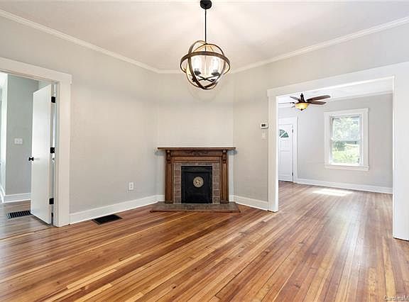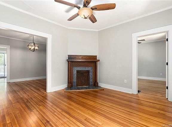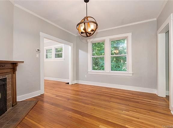 Adorable Arts and Crafts bungalow centrally located off Charlotte Street near downtown Asheville. Relax on the rocking chair front porch, take a short stroll to downtown breweries, and enjoy this city home with tons of charm and period details. Many recent updates include beautifully refinished original heart pine floors, all new exterior and interior paint, new lighting fixtures, new hardware, and economical gas furnace. Huge bedrooms with abundant natural light. Updated bathroom with bamboo floors and double sink. Formal dining room and cute kitchen with dishwasher and double oven. Large back deck is perfect for grilling or entertaining. Private fenced-in backyard has magnificent and serene water feature with cascading pools, waterfall, and koi pond. Lovely landscaping with stone walkway and raised bed garden. Detached studio shed in rear. Plenty of storage in the easily accessible attic and basement.