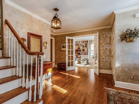 Stunning center hall Colonial adjacent to a 40 acre nature preserve. Gorgeous property with woodland gardens, stone walls and running stream. In 2006 and 2014 a significant addition and renovation was completed adding to the elegant lifestyle of this beautiful country home. the main level features a front to back LR with fireplace and French doors, Formal DR with Bow window, Den with wall of built-in shelves, huge FR with cathedral ceiling, brick fireplace and French doors, gourmet EIK, Wet bar, Full Bth, Potting shed, Mud room and Garage. the second floor features a Master Suite with fireplace, 3 family BR's and hall Bth. the Basement includes a large recreation room. Architectural detail and design throughout. Custom chef's kitchen by Kitchens by Deane features Wolf, Sub Zero and Miele appliances, gorgeous granite countertops, center island and beautiful tile floor. French doors lead to lovely deck overlooking a rushing stream and gardens. A truly lovely home in pristine condition.