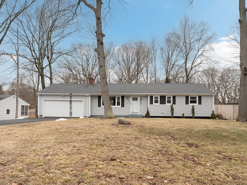 Welcome to your updated ranch-style home! This meticulously renovated 3-bedroom, 2-bathroom home boasts a host of modern amenities and stylish finishes throughout. Step inside to discover a cozy living room adorned with hardwood floors and a charming fireplace, creating the perfect ambiance for intimate gatherings or relaxing evenings at home. The heart of the home is the stunning eat-in kitchen, featuring stainless steel appliances and a breakfast bar with seating, making it a chef's dream come true. Adjacent to the kitchen is a bright dining area. The primary bedroom has ensuite bathroom with tiled shower and a double vanity. Two additional bedrooms offer ample closet space and share the large updated full hallway bathroom. Downstairs, you'll find a newly finished basement providing additional living space, perfect for a home office, media room, or recreational area, limited only by your imagination. Step outside to your fenced-in yard, offering privacy and security for pets, outdoor activities and entertaining. Enjoy the convenience of central air conditioning during warmer months and the added comfort of a 2-car garage for parking and storage. Don't miss the opportunity to call this modern ranch retreat your own. Schedule your private showing today and experience the perfect blend of comfort, style, and convenience!