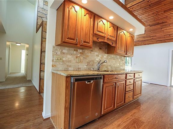 Quality updates throughout this open floor plan ranch. Cathedral ceilings with loads of natural light. Updated oak kitchen with granite, new ss appliances, updated mechanics, new utilities, new bath, new flooring, new driveway, and much more. Deep private lot with large deck and gazebo with walk out access from both the master and living rooms to the deck.