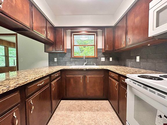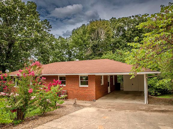 This mostly brick 3 bedroom, 2 bathroom home is nestled in the trees near beautiful Bull Shoals Lake. Enjoy a happy little view of the lake from the front of the house. The spacious living room has large windows and fresh carpet. The den has a fireplace and could be used as a dining area off the kitchen which features dark wood cabinets, gorgeous stone countertops and tiled backsplash. The primary bedroom upstairs has lots of windows for natural light, along with a full bathroom, laundry/mud room just off the covered carport. The sun room and back deck overlook a private back yard with lots of shade trees. The walk out basement offers two more bedrooms, a full bathroom, and an extra living area. The unfinished basement area provides abundant storage space.